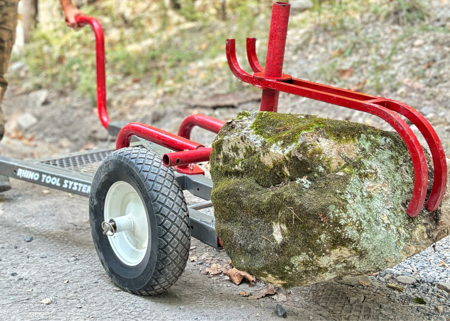 The Rhino Tool System Rock Hauler turns back-breaking work into a one-person, satisfying job.